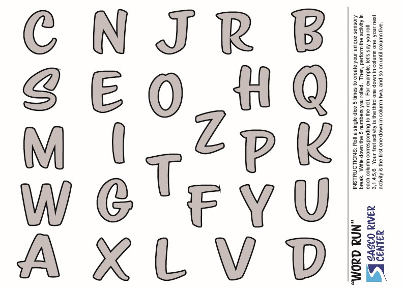 - Start with two pieces of paper with the entire alphabet on it in a random order. You can make your own sheets at home, or download our pre-formatted sheets HERE.